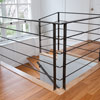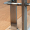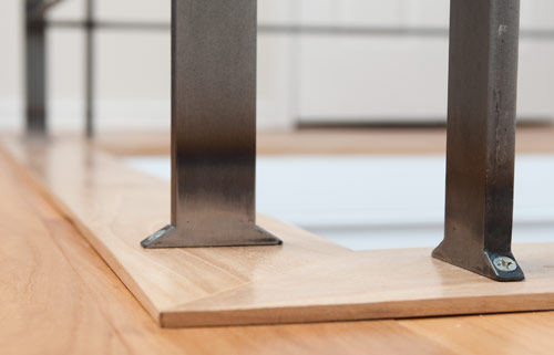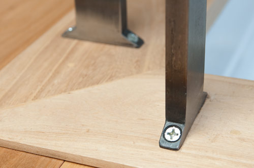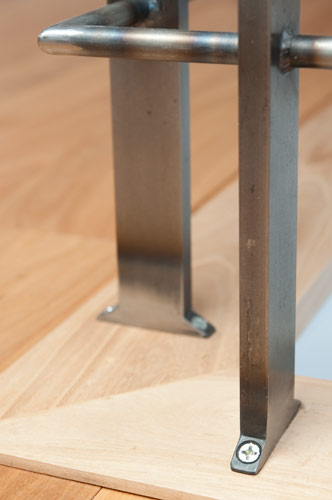 Attachments at floor and wall are in place of larger steel plate pads.